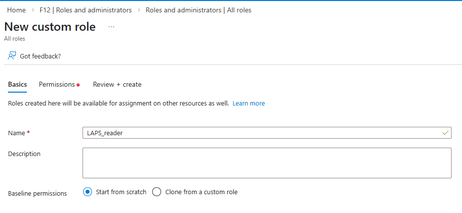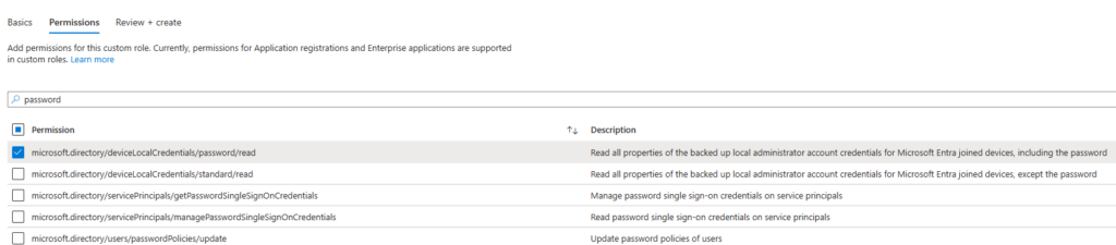 Create a “LAPS Reader” role in Entra with the following permission: microsoft.directory/deviceLocalCredentials/password/read