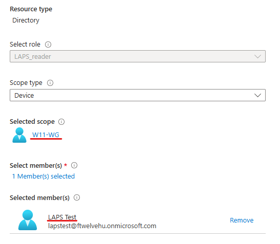 Now you have the option to select the device of which you want to grant the LAPS password to be revealed, then the user who will be given access: