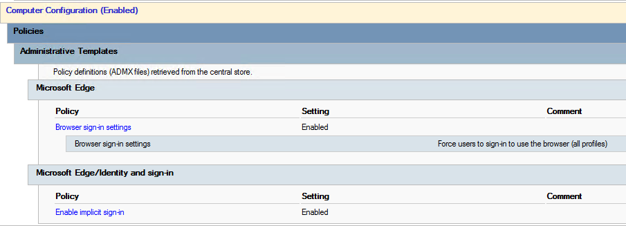 This is the official and supported scenario – however, since the new Edge is Chromium based, you can also enable CloudAPAuth. Enforcing signing into Edge combined with implicit sign-in may probably fit for standard scenarios, but in my case it just resulted in more questions than answers (overcomplicating, as usual 🙃).
