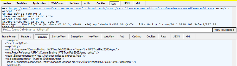 The app then queries the WS-Trust MEX endpoint to see if integrated authentication endpoint is available.