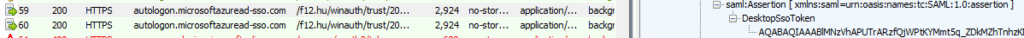 Since the autologon URL is added to the intranet zone list, the client requests a ticket for HTTP/autologon.microsoftazuread-sso.com, then this ticket is passed to Entra and a SAML token (including the DesktopSsoToken) is returned (POST to https://autologon.microsoftazuread-sso.com/f12.hu/winauth/trust/2005/windowstransport?client-request-id=<id>) :