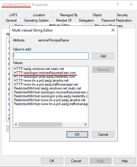 The client will attempt to find the SPN for HTTP/autologon.microsoftazuread-sso.com in AD. This SPN is registered to the AZUREADSSOACC computer account: