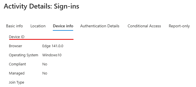 DesktopSSO login does not provide information on the device identity in Entra. This makes sense on a domain-only device, but may cause some headaches on Hybrid Joined devices